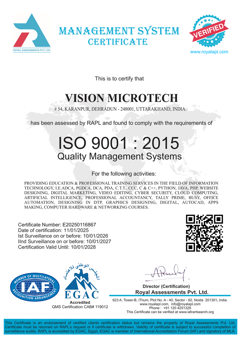 ISO REGISTRATION CERTIFICATE VISION MICROTECH