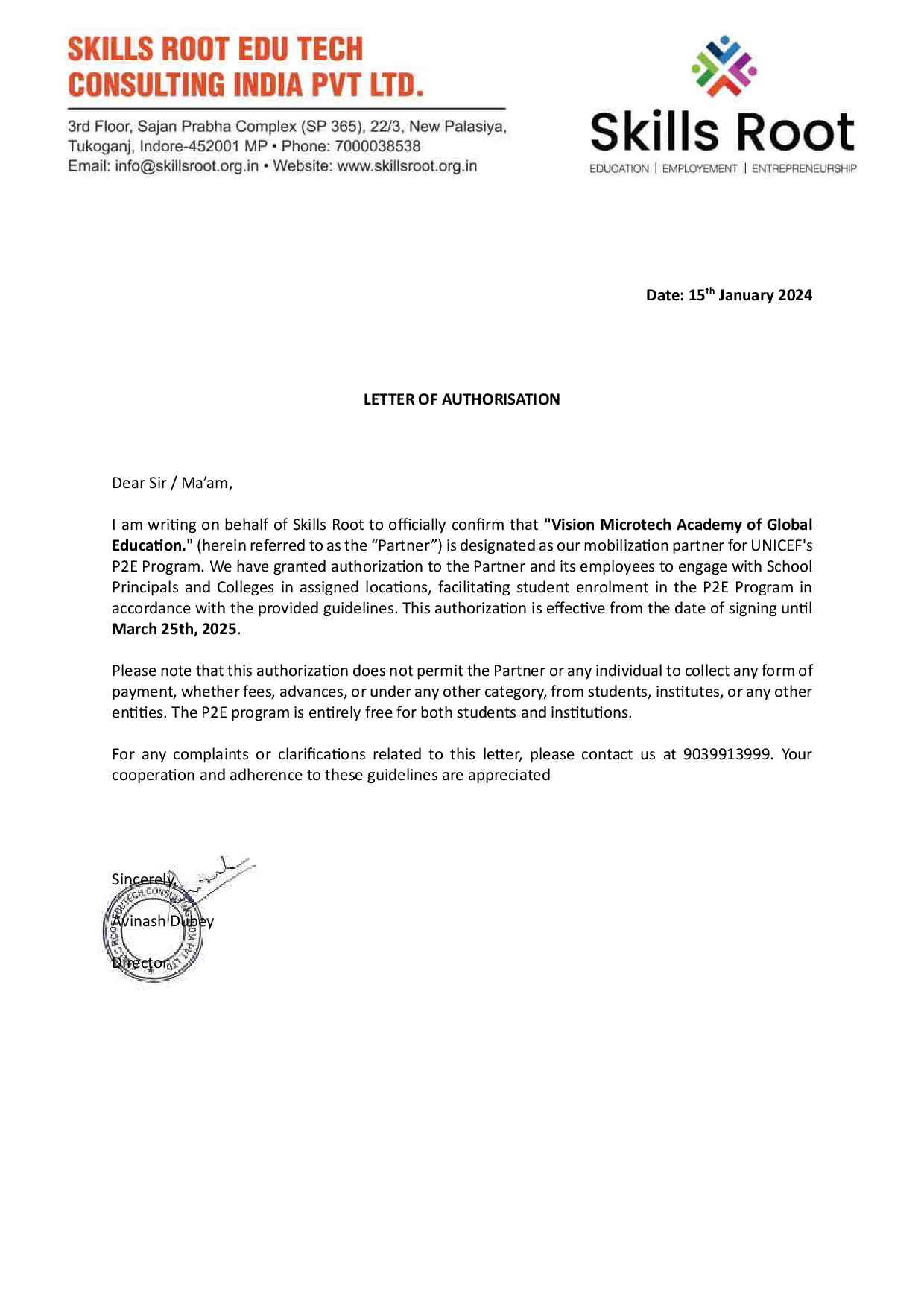Authorization Letter from Skills Root Edu Tech Consulting India PVT LTD